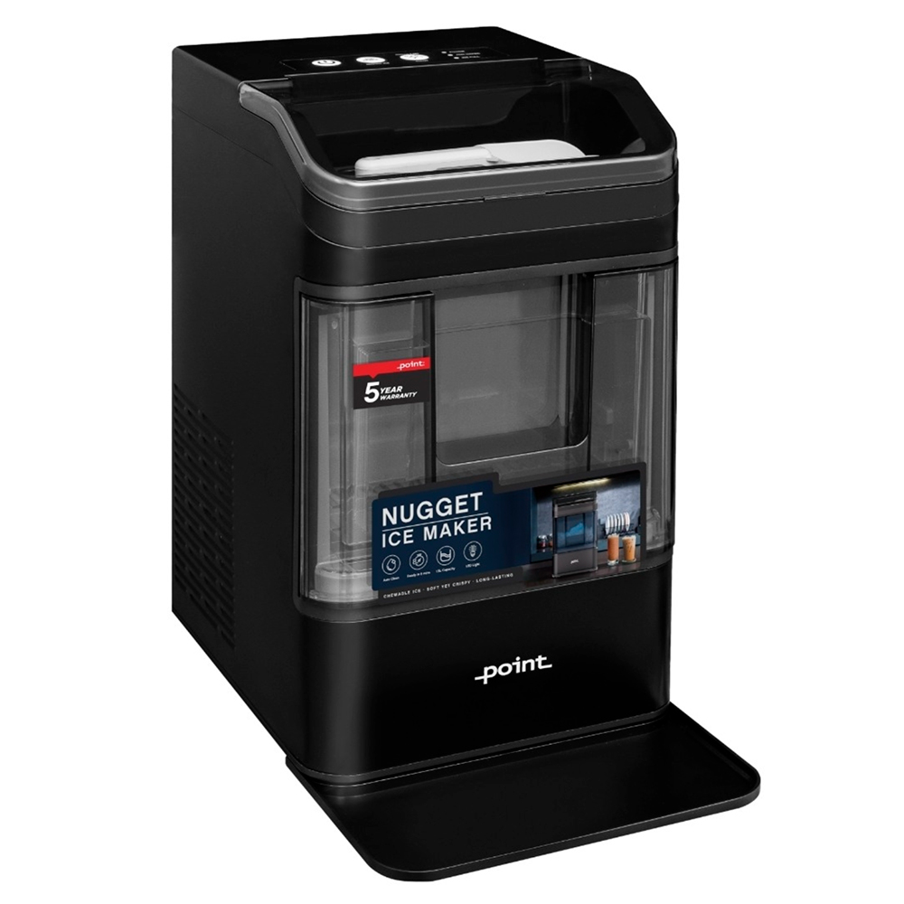 Pebble ice, nugget ice… Mikä olisi oikea suomennos näille pienille jääpaloille, joita tämä joulupukin tuoma kone tekee? Helmijää? Tämä on jääpalakone, joka valmistaa pieniä jääpaloja, joita tarvitaan pääasiassa tiki-drinkeissä, mutta joita voidaan käyttää jäämurskan sijasta muissakin drinkeissä. Kone tuottaa tarvittaessa 15 kg jäätä päivässä ja siinä on 1,5 litran vesisäiliö. Olen aiemmin käyttänyt silikonisisia jääpalamuotteja pienten jääkuutioiden valmistamiseen, mutta niiden irroittaminen muoteista oli kyllä pahoilaisen keksimää hommaa. Koneen merkki ja malli on Point POIM 5000 Nugget-jääpalakone. Point on Power-kodinkoneketjun oma merkki, joten sitä ei muualta saa. Laite painaa kymmenen kiloa ja sen mitat ovat (L x S x K) 24,6 x 29,5 x 41,4 cm.